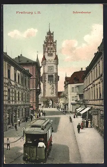 AK Freiburg i. B., Strassenbahn am Schwabentor