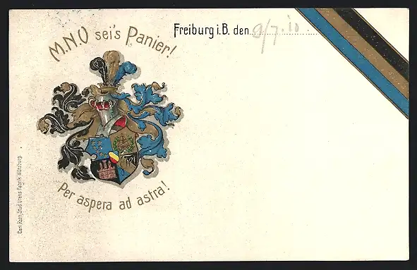 AK Freiburg i. B., Studentenwappen mit Ritterhelm, M.N.U. sei`s Panier