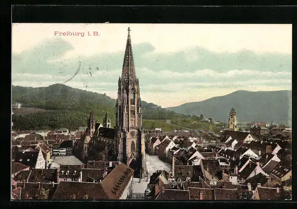 AK Freiburg i. B., Teilansicht mit Kirche