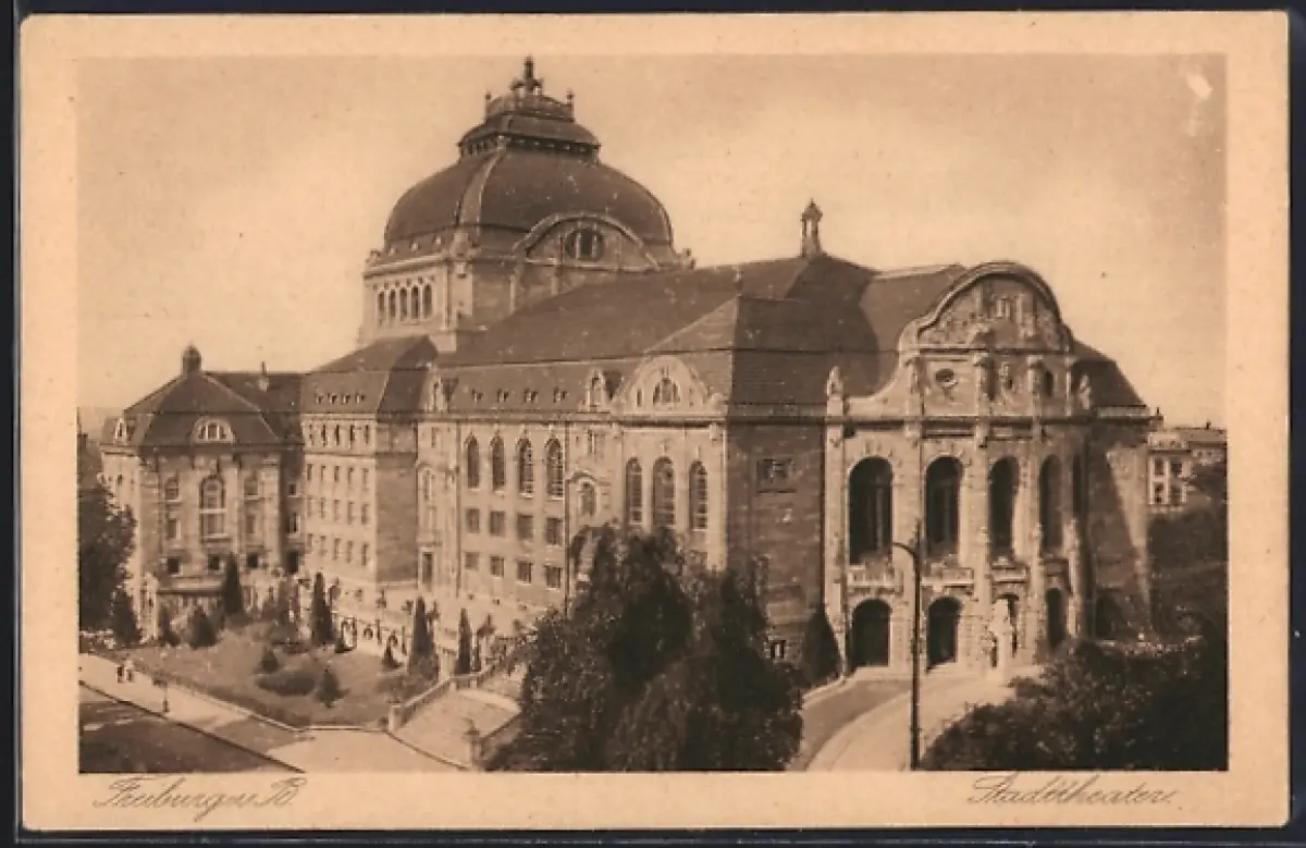AK Freiburg i. B., Totalansicht vom Stadttheater