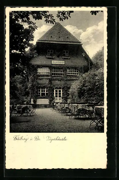 AK Freiburg i. Br., Gasthaus Jägerhäusle mit Garten