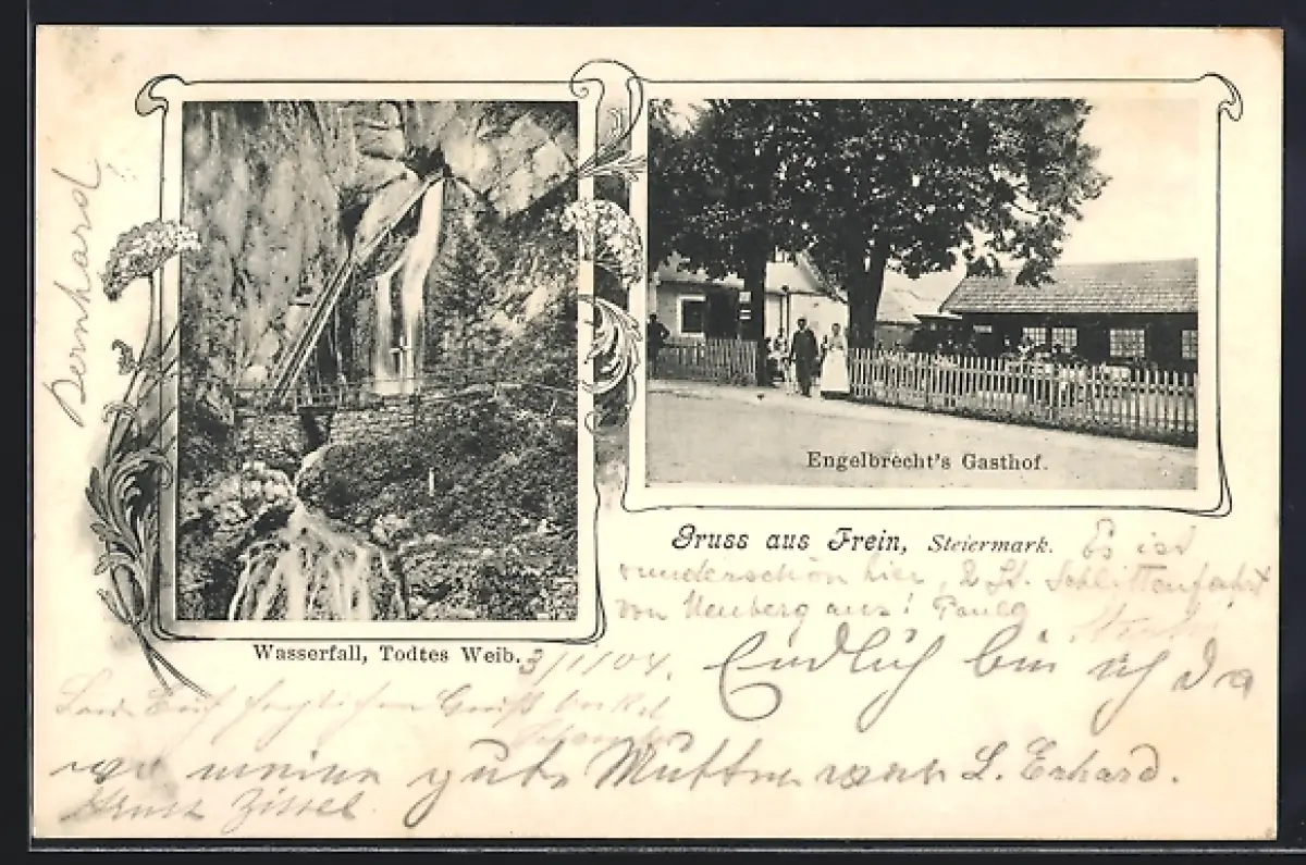 AK Frein /Steiermark, Engelbrecht`s Gasthof, Wasserfall, Todtes Weib