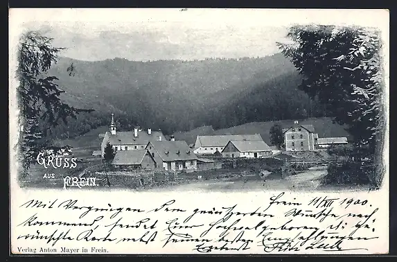 AK Frein bei Mürzsteg, Ortsansicht mit kleiner Kirche