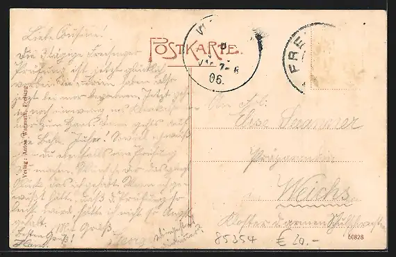 alte Ansichtskarte, gelaufen 1906, Briefmarke entfernt, guter Zustand