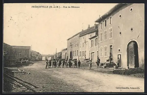 AK Frémonville, Rue de Blâmont avec groupe de personnes devant des maisons