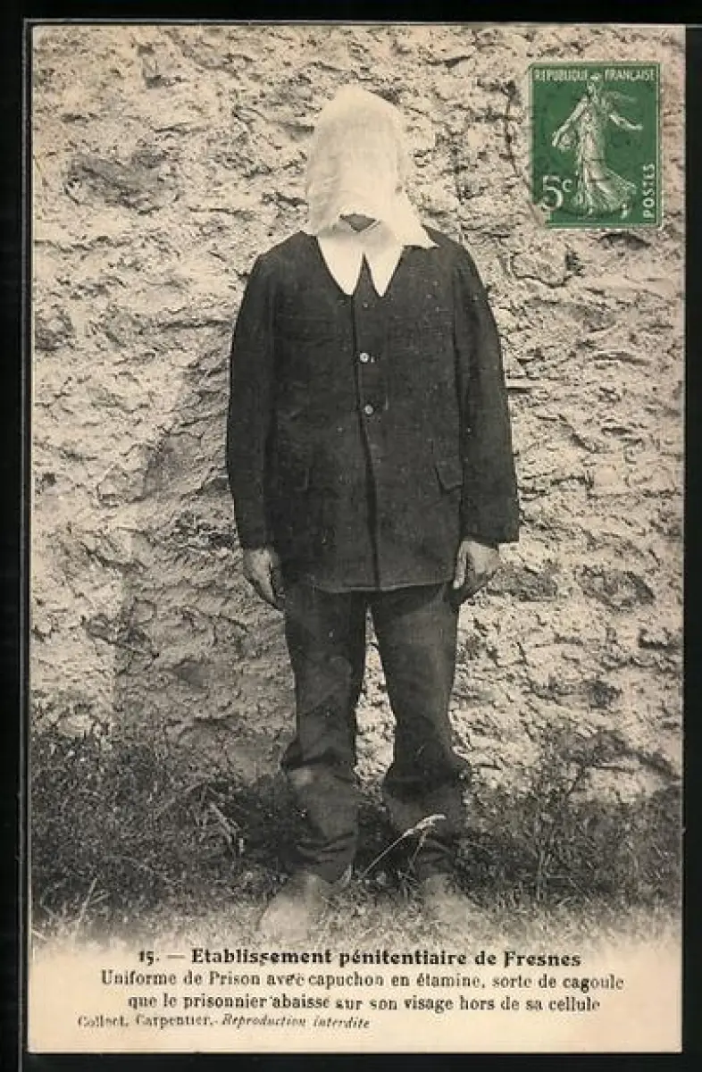 AK Fresnes, Etablissements Penitentiaires, Uniforme de Prison avec capuchon en étamine..., Inhaftierter