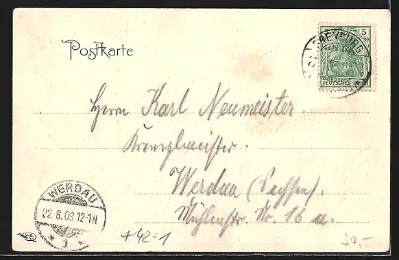 alte Ansichtskarte, gelaufen 1903, guter Zustand