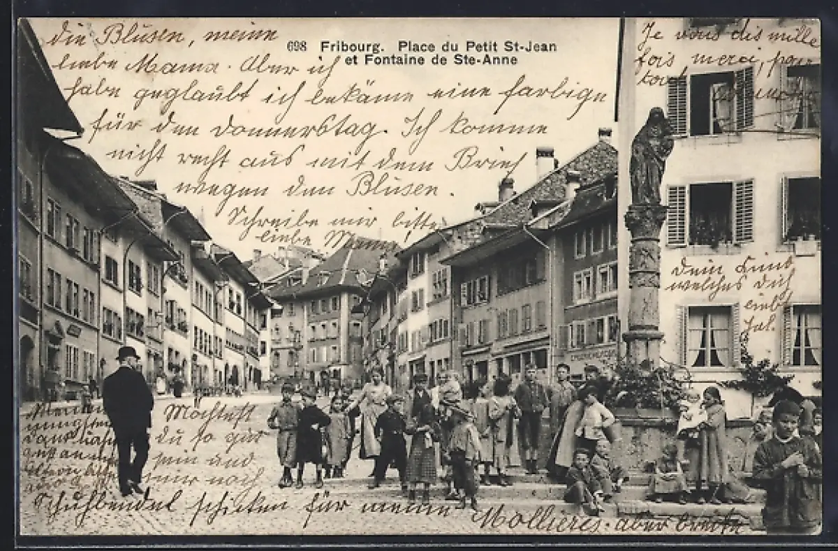AK Fribourg, Place du Petit St-Jean et Fontaine de Ste-Anne