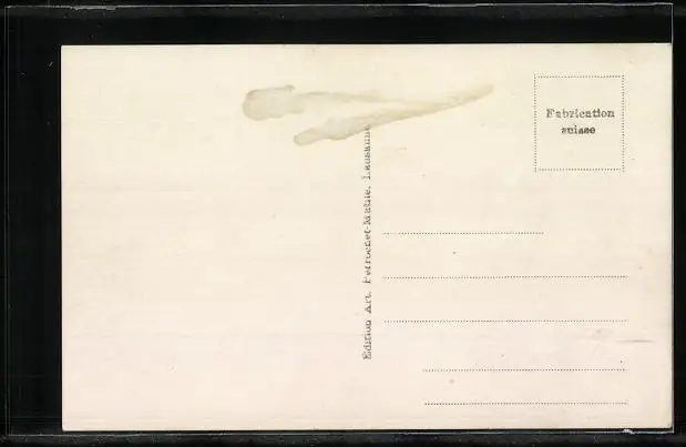 Personenbezogene Daten auf der Rückseite der Karte wurden durch blauen Textmarker unkenntlich gemacht. Die blauen Stellen sind auf die Vorderseite durchgeweicht und wirken sich negativ auf das Postkartenfoto aus