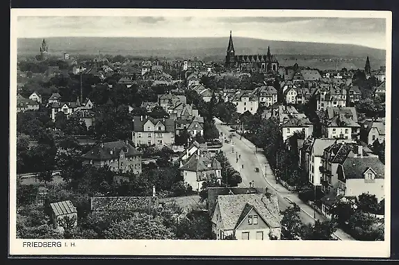 AK Friedberg i. H., Strassenpartie mit Kirche