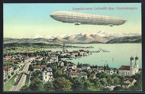 AK Friedrichshafen, Graf Zeppelins Luftschiff über der Stadt