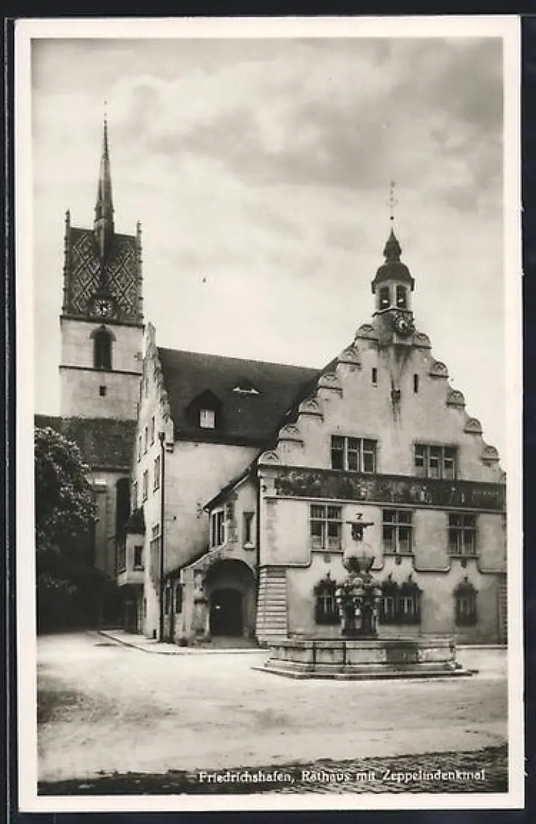 AK Friedrichshafen, Rathaus, Zeppelindenkmal