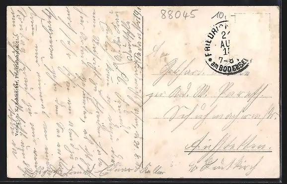 alte Ansichtskarte, gelaufen, Briefmarke entfernt, rückseitig Oberflächenschaden, guter Zustand