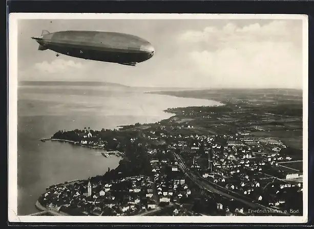 AK Friedrichshafen a. Bod., Totalansicht mit Zeppelin