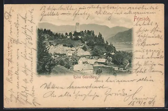 AK Friesach, Ortsansicht mit Ruine Geiersberg