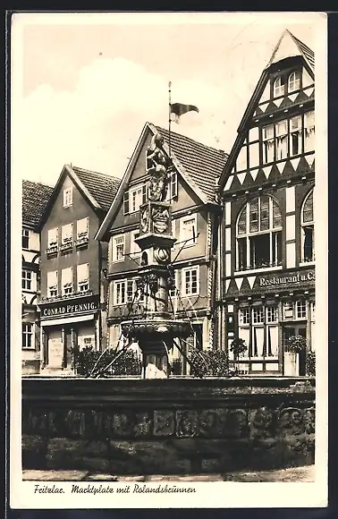AK Fritzlar, Marktplatz mit Rolandsbrunnen