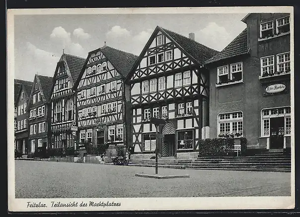 AK Fritzlar, Teilansicht des Marktplatzes mit Fachwerkshäusern