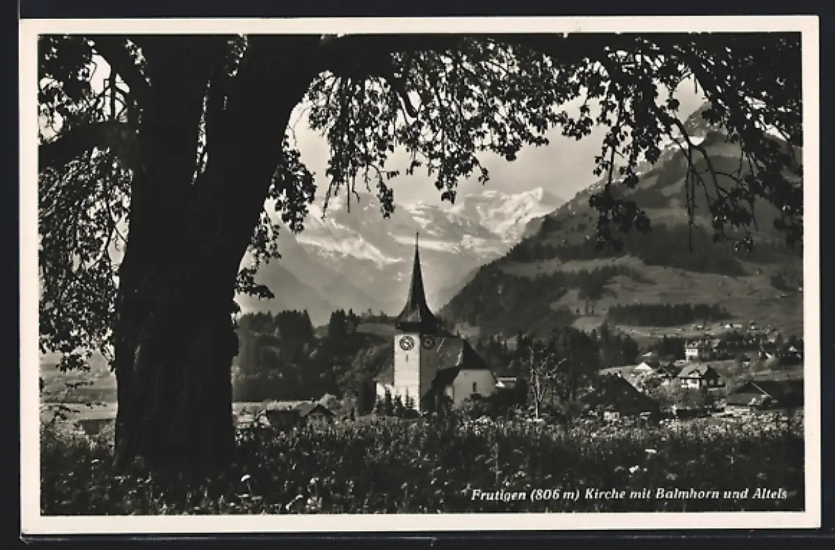 AK Frutigen, Kirche mit Balmhorn und Altels