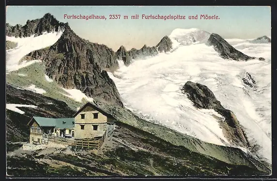 AK Furtschagelhaus, verschneite Furtschagelspitze und Mösele