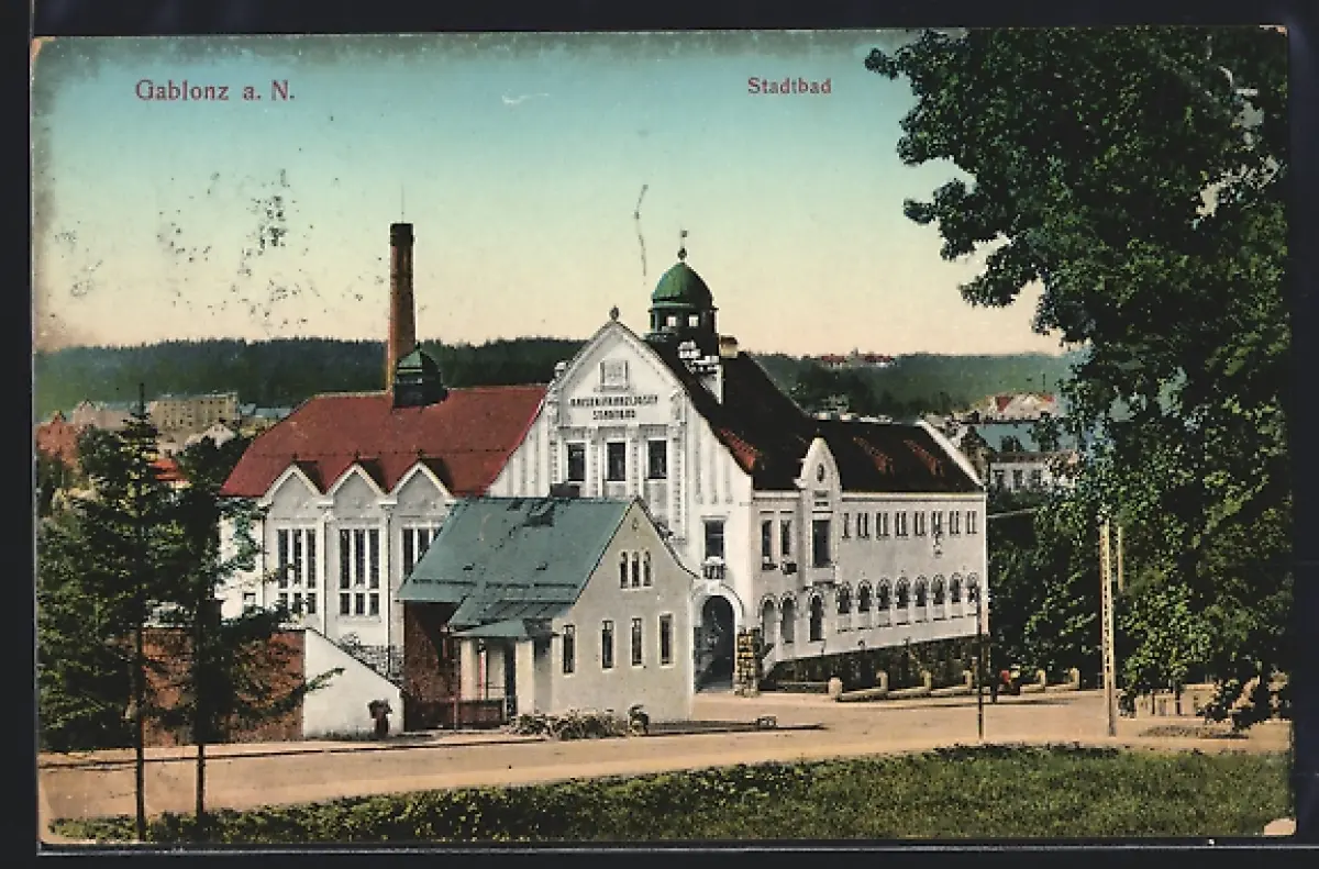 AK Gablonz a. N., Kaiser Franz Hosef Stadtbad