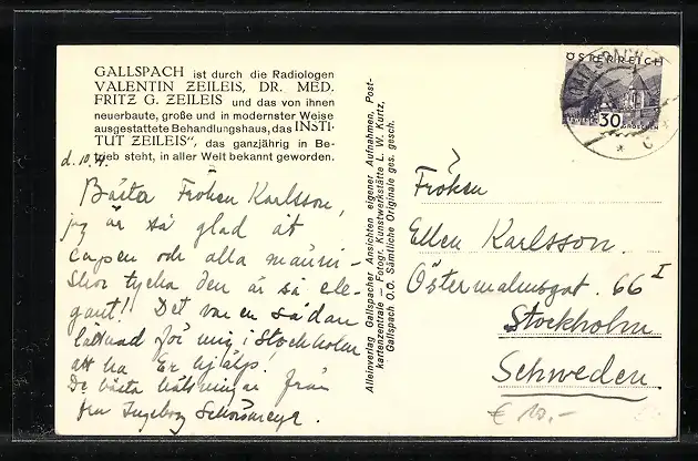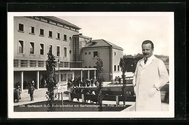 AK Gallspach, Zeileis-Institut mit Gartenanlage und Dr. Fritz Zeileis