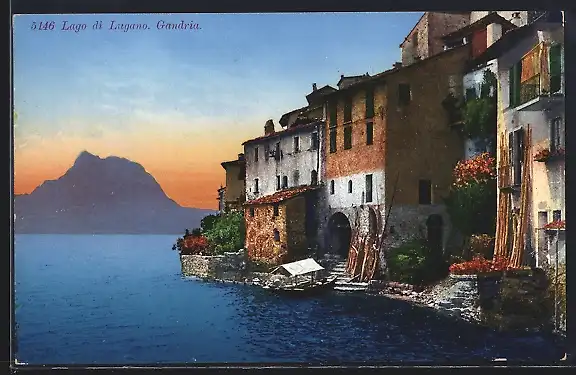 AK Gandria /Lago di Lugano, Häuser am See, Abendstimmung
