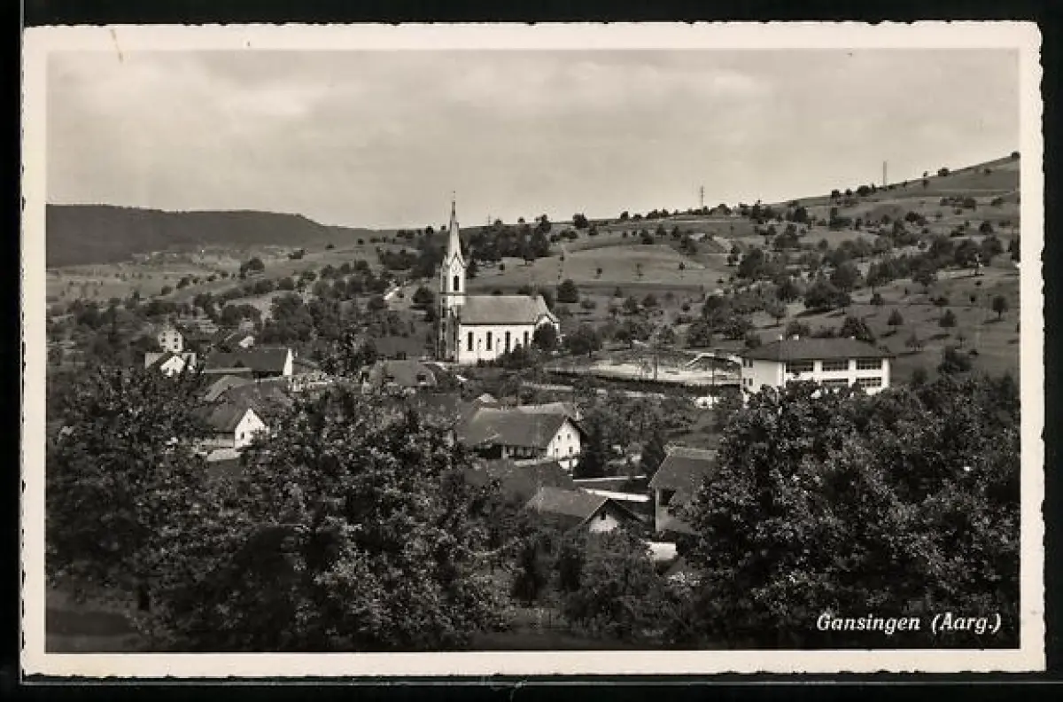 AK Gansingen /Aarg., Ortsansicht mit Kirche