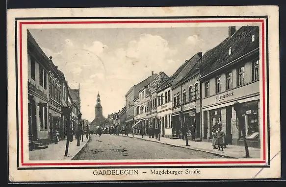 AK Gardelegen, Magdeburger Strasse mit Geschäften