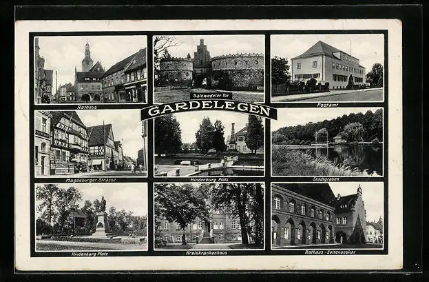 AK Gardelegen, Rathaus, Postamt, Salzwedeler Tor