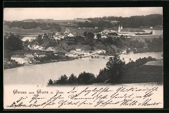 AK Gars a. Inn, Uferpartie mit Kloster
