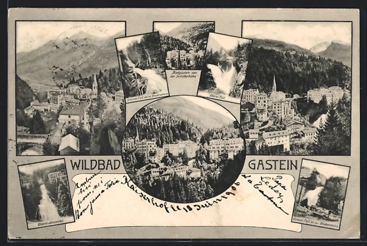 AK Gastein, Badgastein von der Schillerhöhe, oberer & unterer Fall