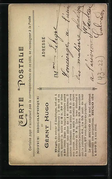 AK Géant Hugo, Riese in Anzug mit Zylinder