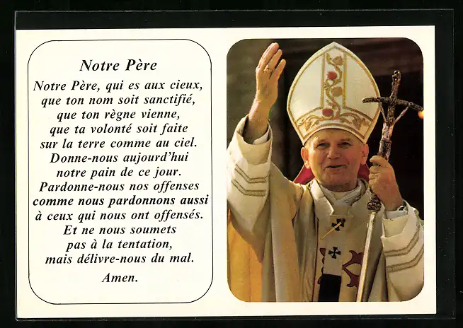 AK Gebetstext Notre Père, Papst Johannes Paul II.