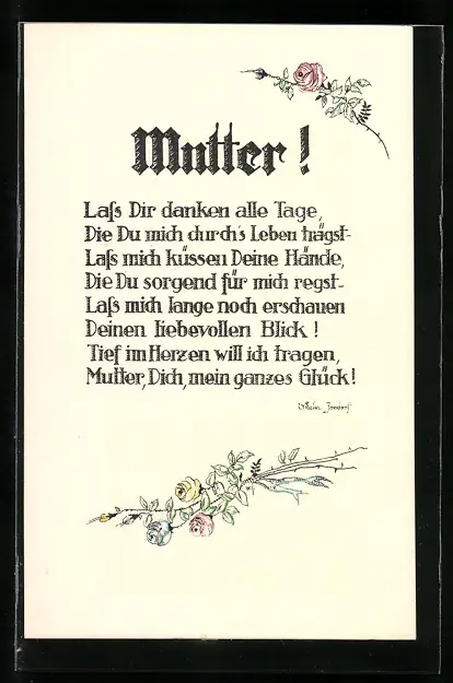 AK Gedicht Mutter, Rosenzweige, Muttertag