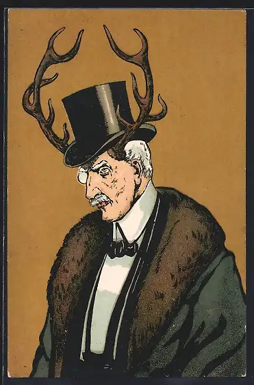 AK Gehörnter Ehemann mit Monokel und Zylinder