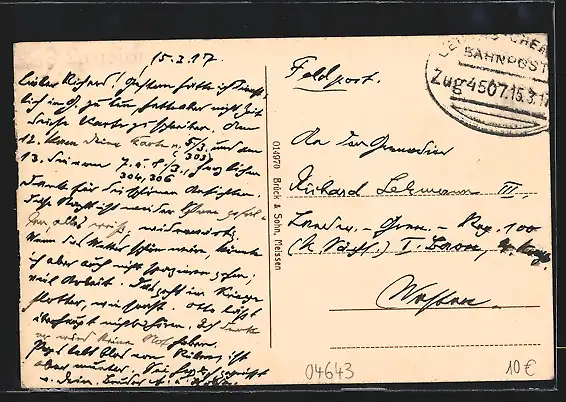 alte Ansichtskarte, gelaufen 1917, Randschaden re., guter Zustand