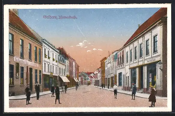 AK Geldern, Issumerstrasse mit Restaurant und Geschäften