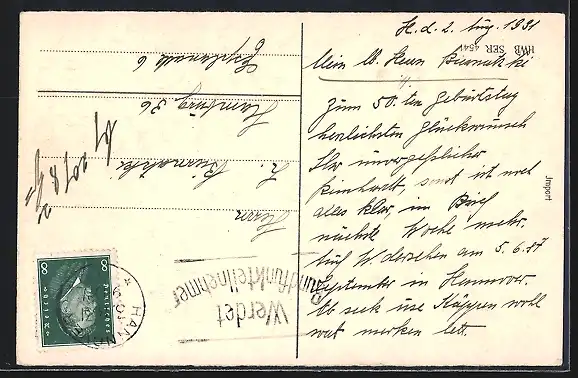 alte Ansichtskarte, gelaufen 1931, guter Zustand