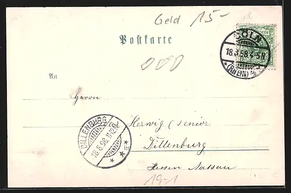 alte Ansichtskarte, gelaufen 1898, Eckknick oben li., guter Zustand