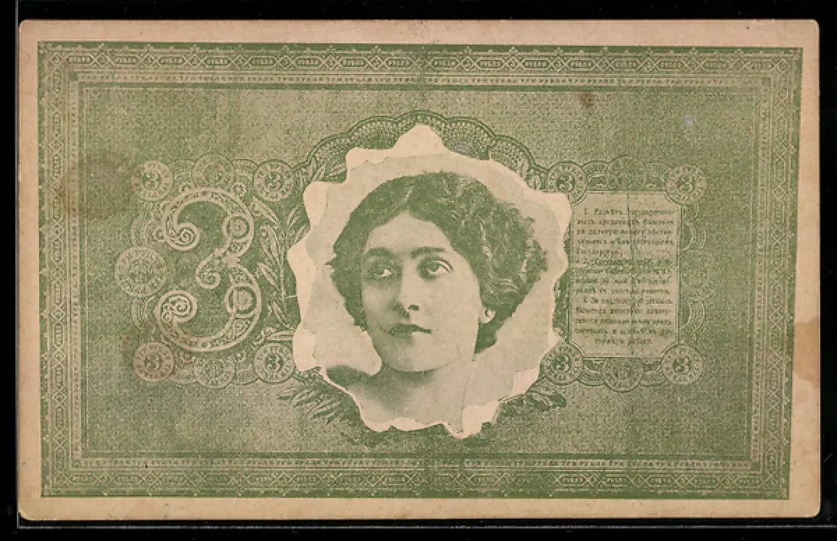 AK Geldschein, Portrait einer schönen Frau