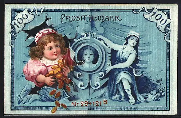 AK Gelschein und Mädchen mit Münzen