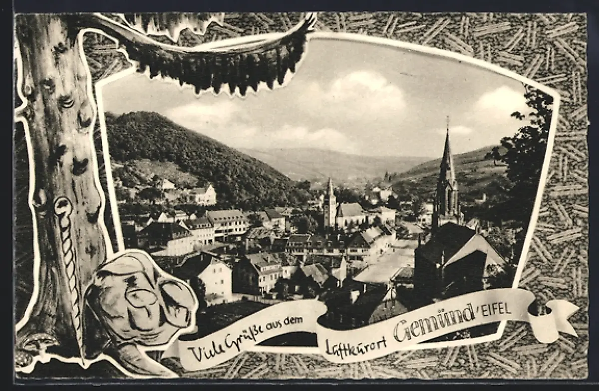 AK Gemünd /Eifel, Ortsansicht, Kirche, Berge