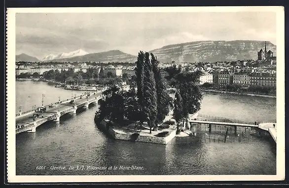 AK Genève, Ile Rousseau et le Mont-Blanc
