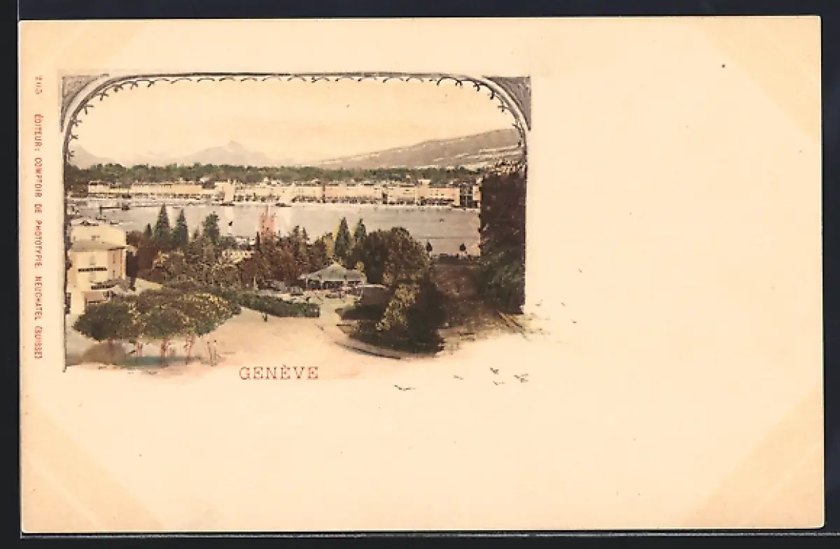 AK Genève, Panorama mit Bäumen
