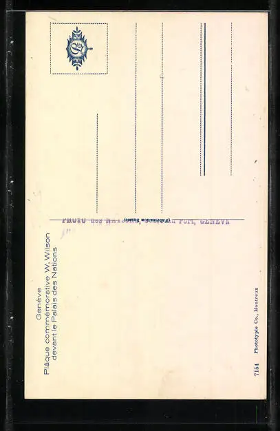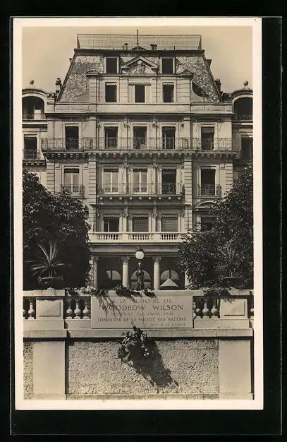 AK Genève, Plaque commemorative W. Wilson devant le Palais des Nations
