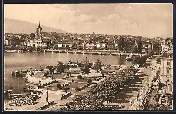 AK Genève, Quai du Mont-Blanc et vue sur la ville