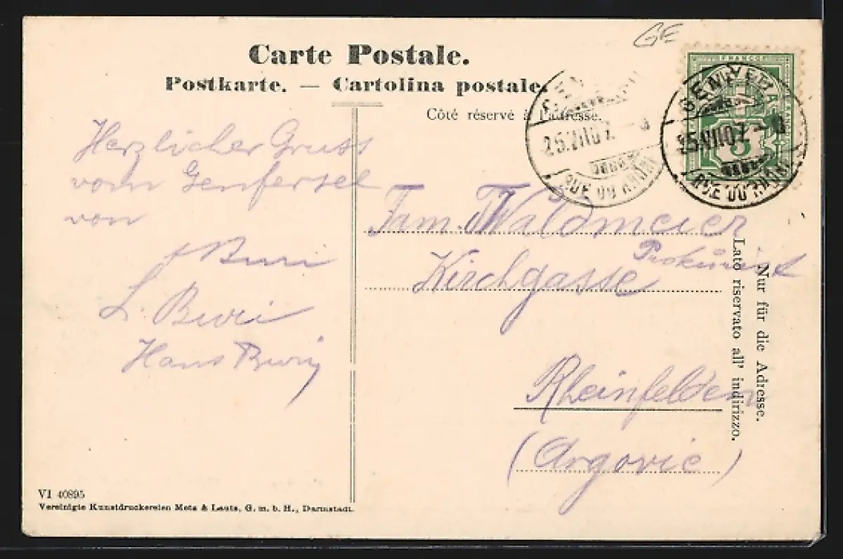 gelaufen 1907, Eckknick unten re., guter Zustand