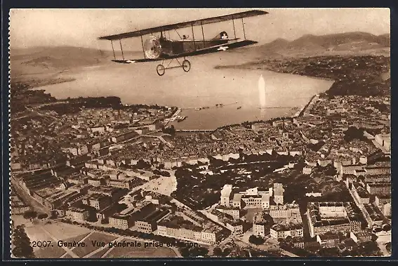 AK Geneve, Vue generale, Flugzeug über der Stadt