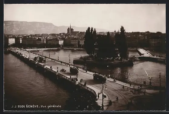 AK Genève, Vue générale, Strassenbahn