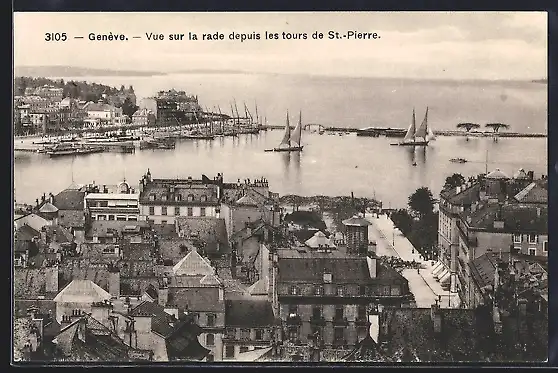 AK Genève, Vue sur la rade depuis les tours de St-Pierre
